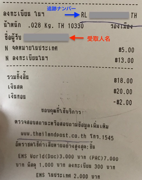 国際書留便で発送した場合の追跡方法について」タイからお届け。