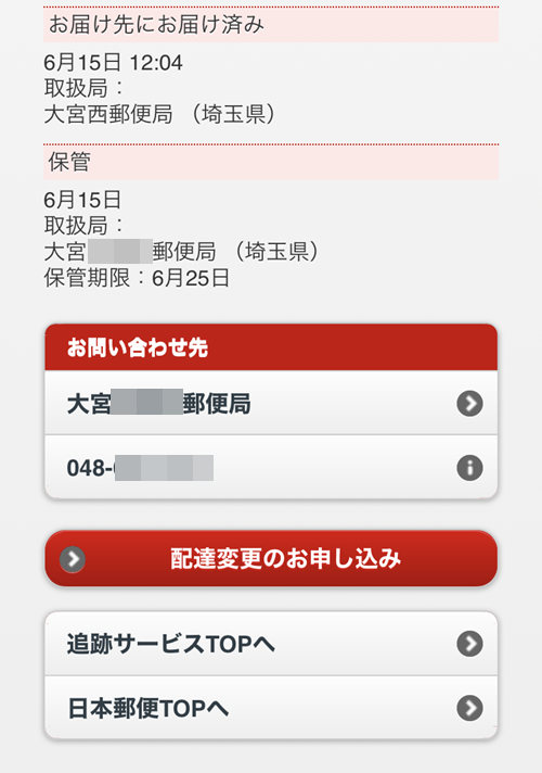 郵便局の局留め 郵便追跡画面の見方ゆうパックでの例。