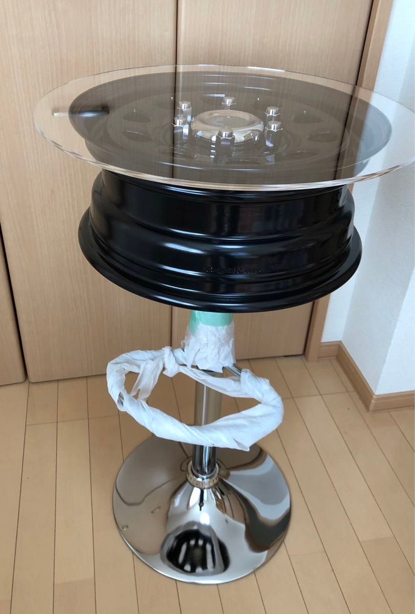 きいちベース on X: "家にあった使わないホイールとカウンターチェアでホイールテーブルを作成!!ワイトレ 赤いパーツ だけネットで中古を買いました!穴開けの位置決めに少し手こずったけど他は意外とよくできた!あとはアクリル板を注文して乗せれば完成!ホイール。