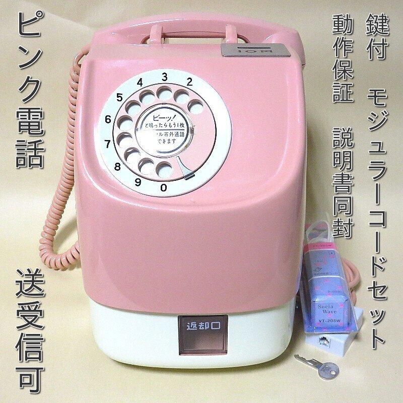 昭和遺産ピンク電話セール品NTTダイヤル回線で送信通信可能なピンク公衆電話10円玉公衆電話 通信用KSキー付 アナログダイヤル回線で使えます。-昭和レトロ雑貨家具・黒電話・古時計・電笠照明等のネットショップ販売柊花堂。