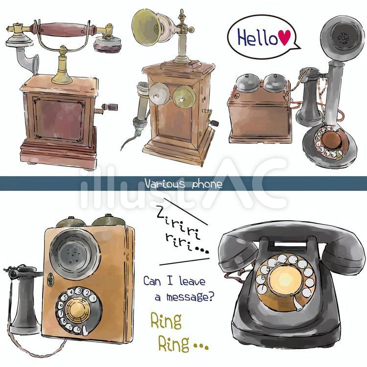 昔の電話機セットイラスト - No: 1140212無料イラスト・フリー素材なら「イラストAC」。