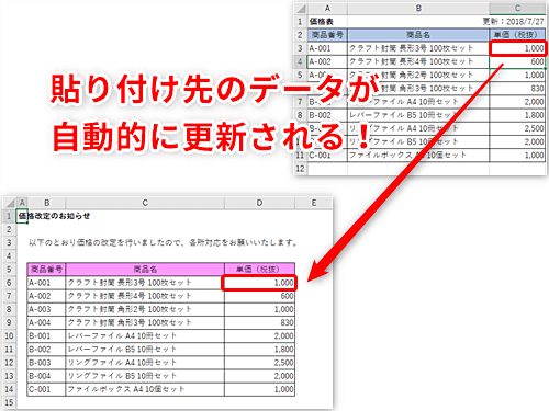 Excel 価格改定を一度の修正で複数の表に反映したい!エクセルでコピー元を修正すると貼り付け先も更新されるようにするテク - いまさら聞けない Excelの使い方講座 - 窓の杜。