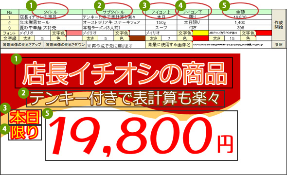 ExcelにてPOPを作成したいのですが、売価が変わるごとに手入力する手- Yahoo!知恵袋。