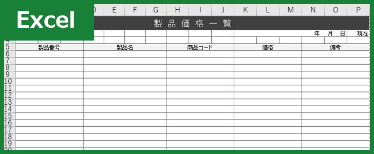 製品価格一覧表 Excel 無料テンプレート「00003」別名:販売価格表・商品価格表をお探しの方に最適なひな形。