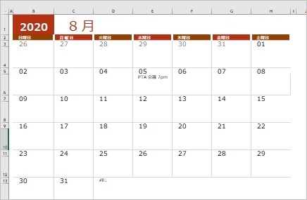 月間カレンダー - 無料テンプレート公開中 - 楽しもう Office。