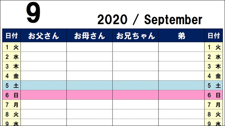 無料Excelテンプレート 家族カレンダーその2│ エクセルテンプレート 気ままに配信中♪ Byエクセルママ。