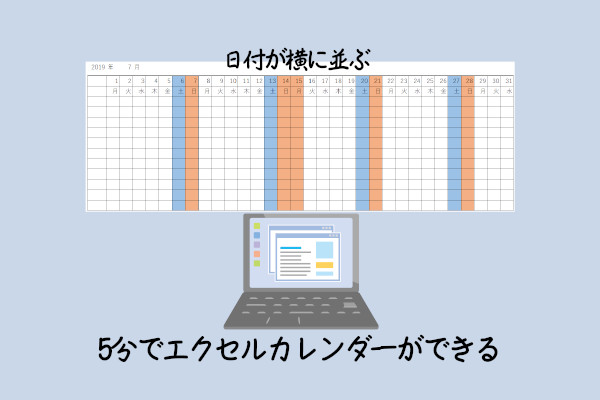 EXCEL エクセルカレンダー横型テンプレートの作成方法ad-ology。