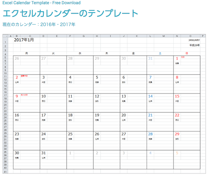 エクセルカレンダーの無料テンプレート集年間・月間カレンダーad-ology。
