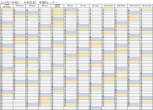 2019・2020年の年間エクセルカレンダー1月・4月始まりの縦並び無料ダウンロードWindowsパソコン初心者ナビ。