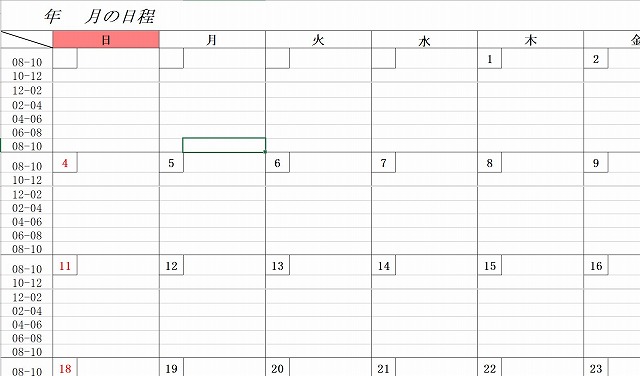 エクセルの月間日程カレンダーのテンプレート - エクセルフリー 無料ダウンロード。