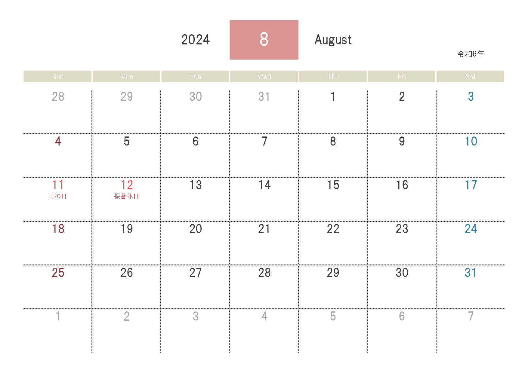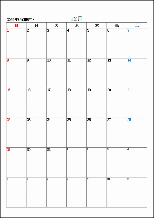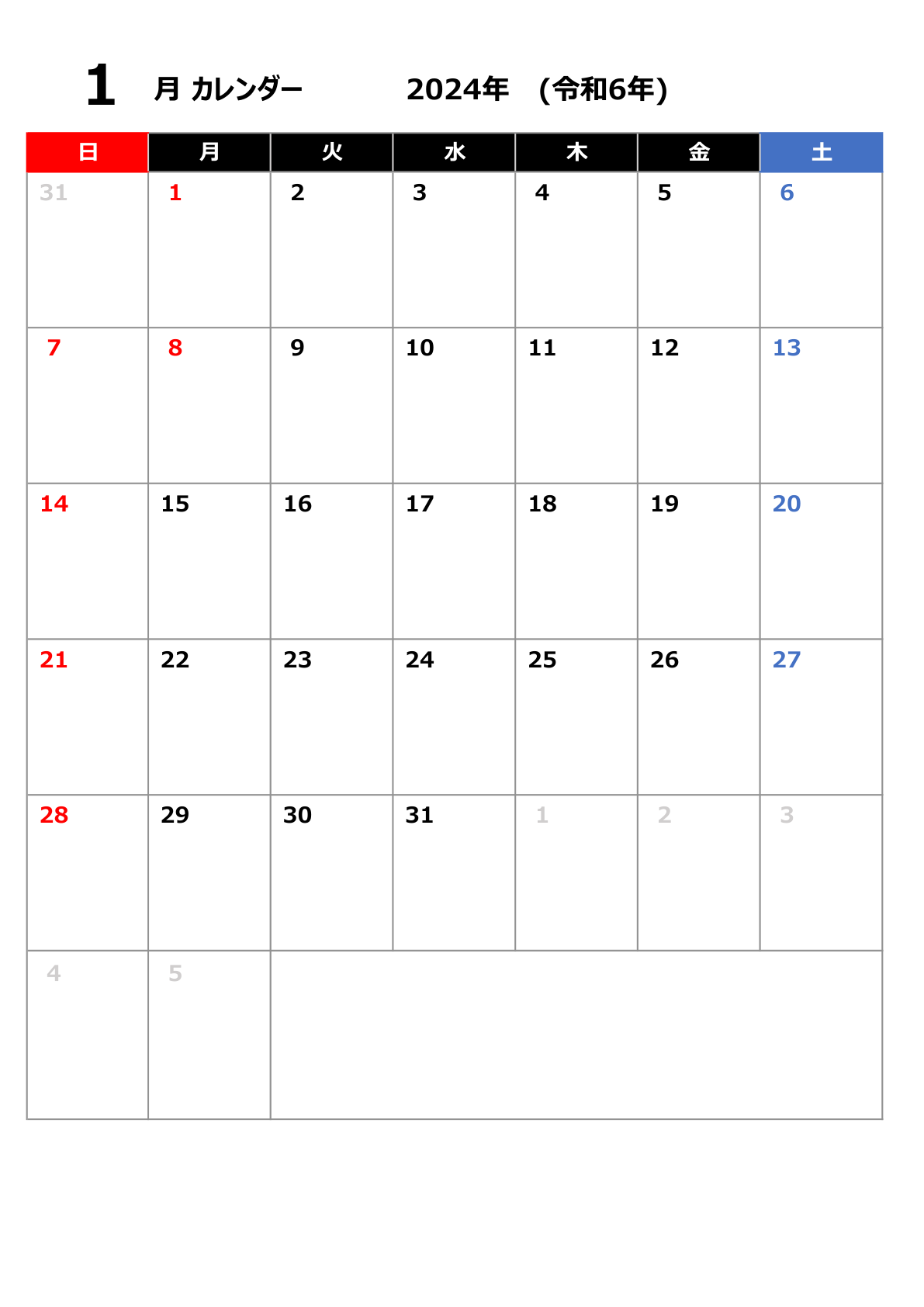 2024年度カレンダー 月単位 無料Excelテンプレート - すぐに使える便利なExcelテンプレートサイト。