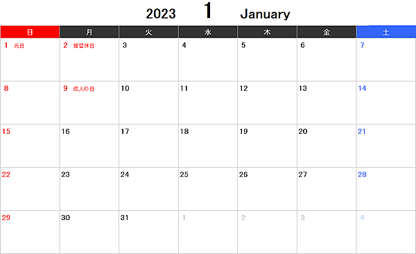 2023年度1月始まりカレンダーテンプレート詰め合わせ: こだわりEXCEL エクセル テンプレート。