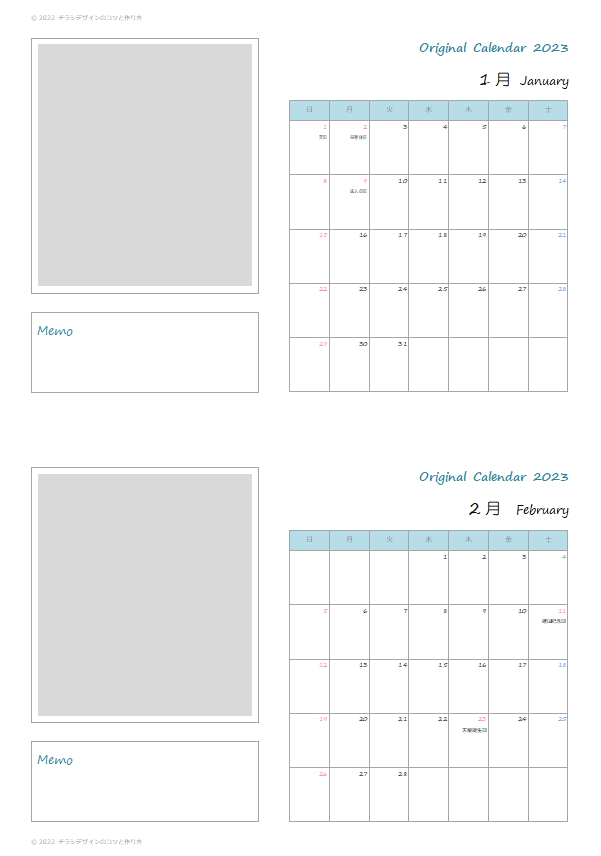 オリジナル卓上カレンダー エクセル版チラシデザインのコツと作り方未経験でもすぐに出来る無料テンプレート。