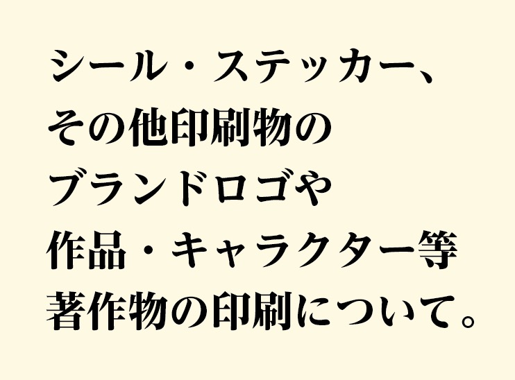 ブランドロゴやキャラクターその他著作物の印刷について有限会社デジタルプリント。