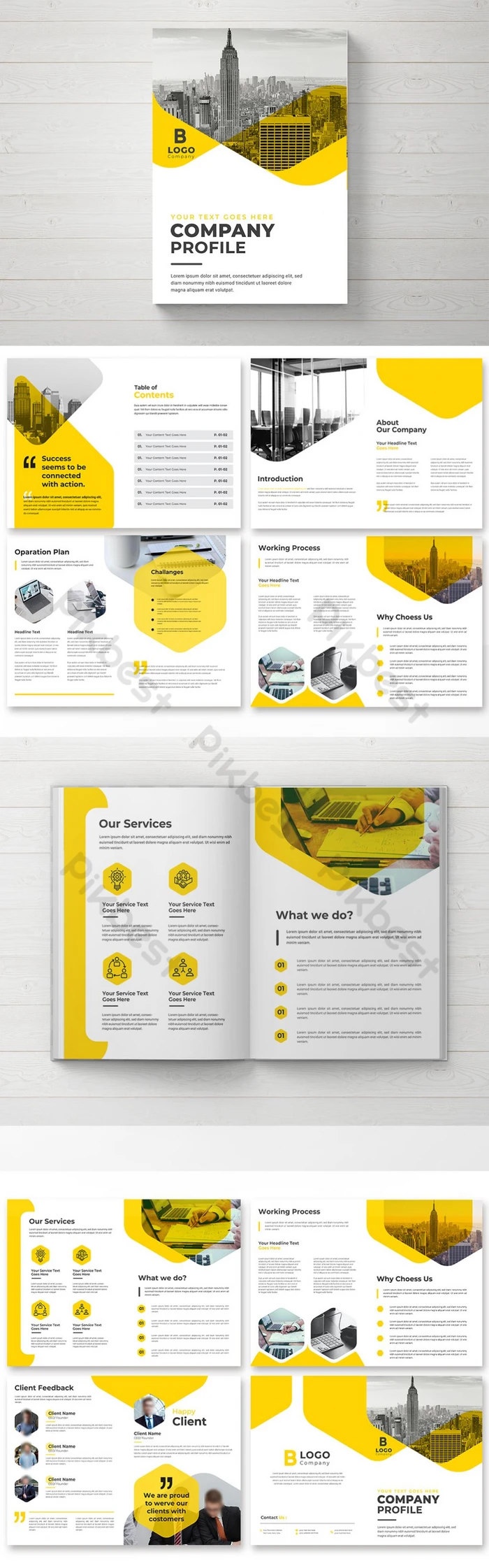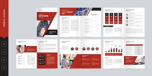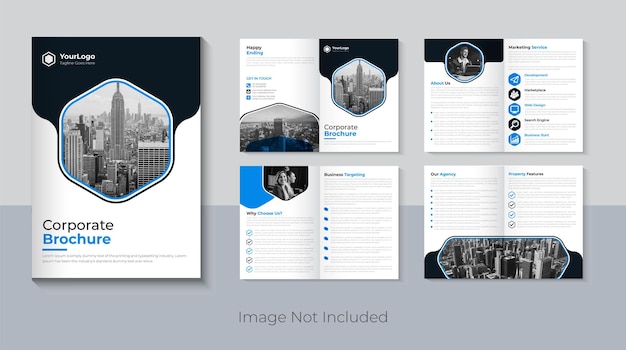 プロの会社概要パンフレット テンプレート、企業 8 ページ パンフレット デザインPremiumベクトル素材。