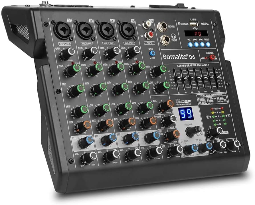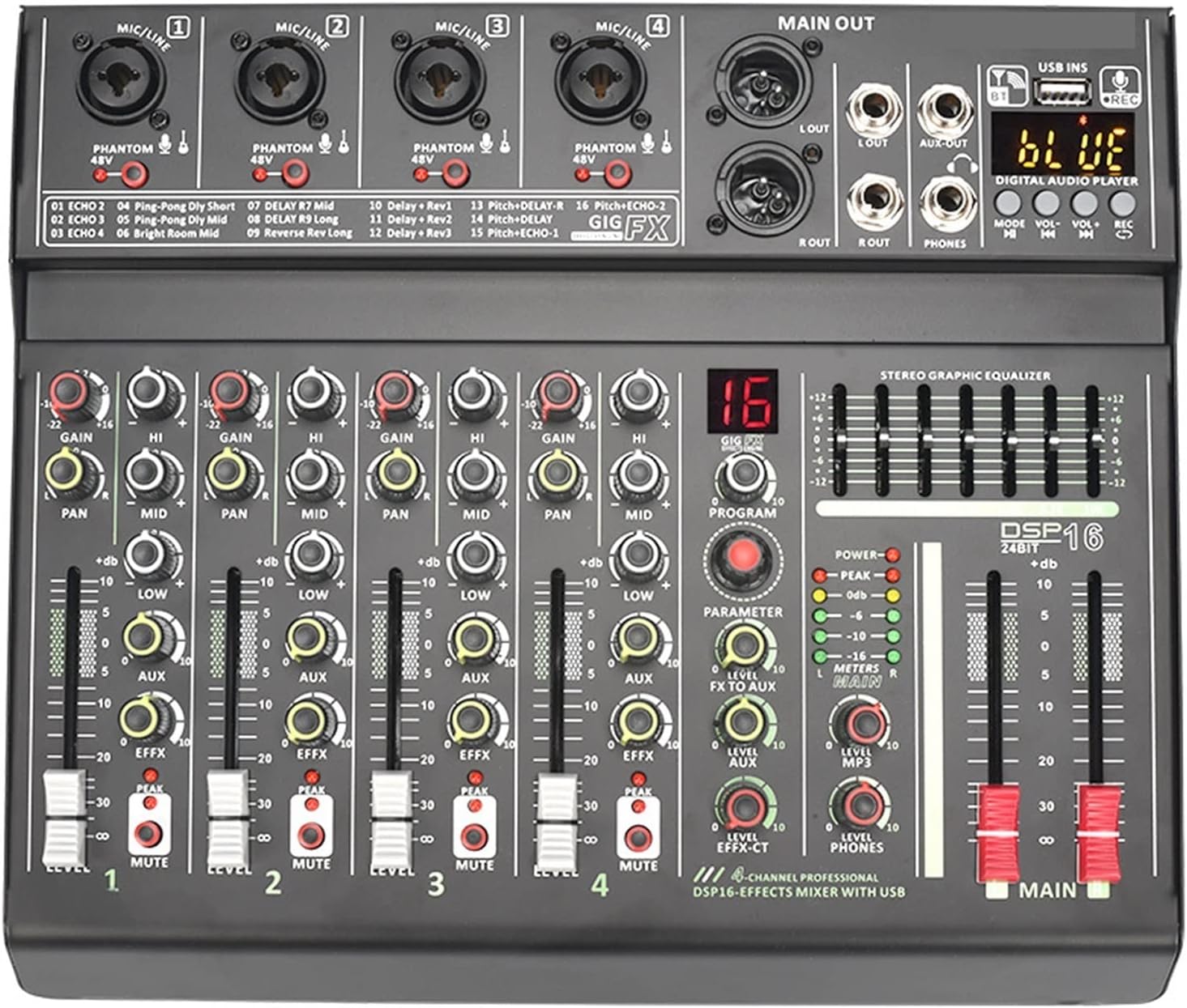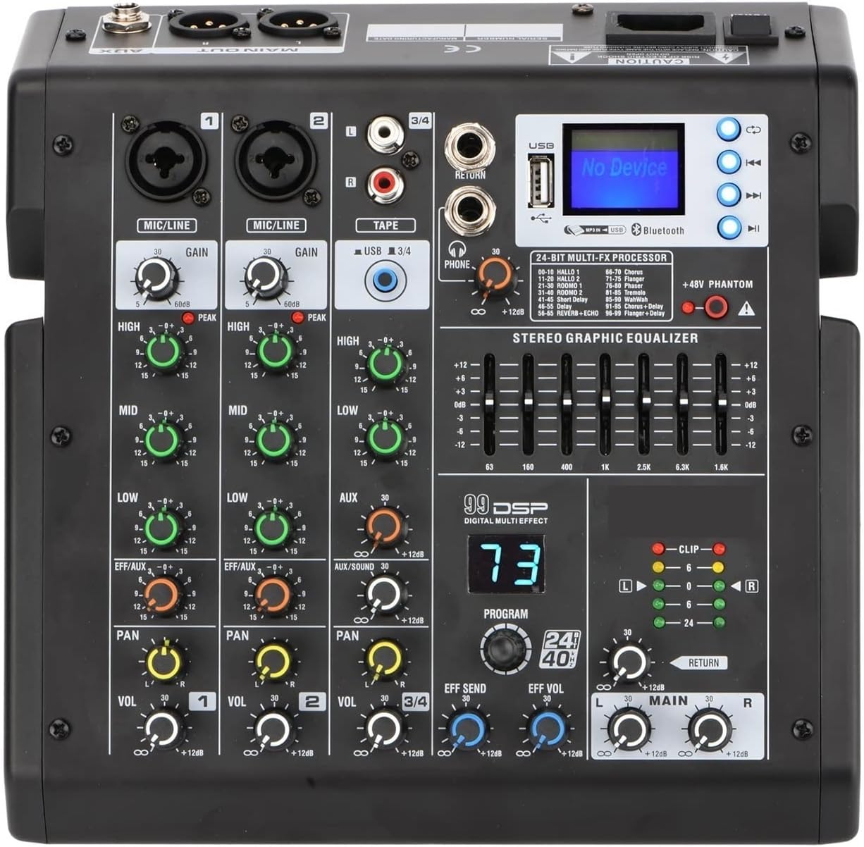 ミキサー 70mm フェーダー ミキサー 4 チャンネル 7 バンド EQ 16 エフェクト ミキシング コンソール 個別 48VAmazon.co.jp: オーディオミキサー プロのスタジオや音楽愛好家向けの XLR 出力と 48V ファンタム電源を備えたミキサー 4チャンネル Aux Effec PC。