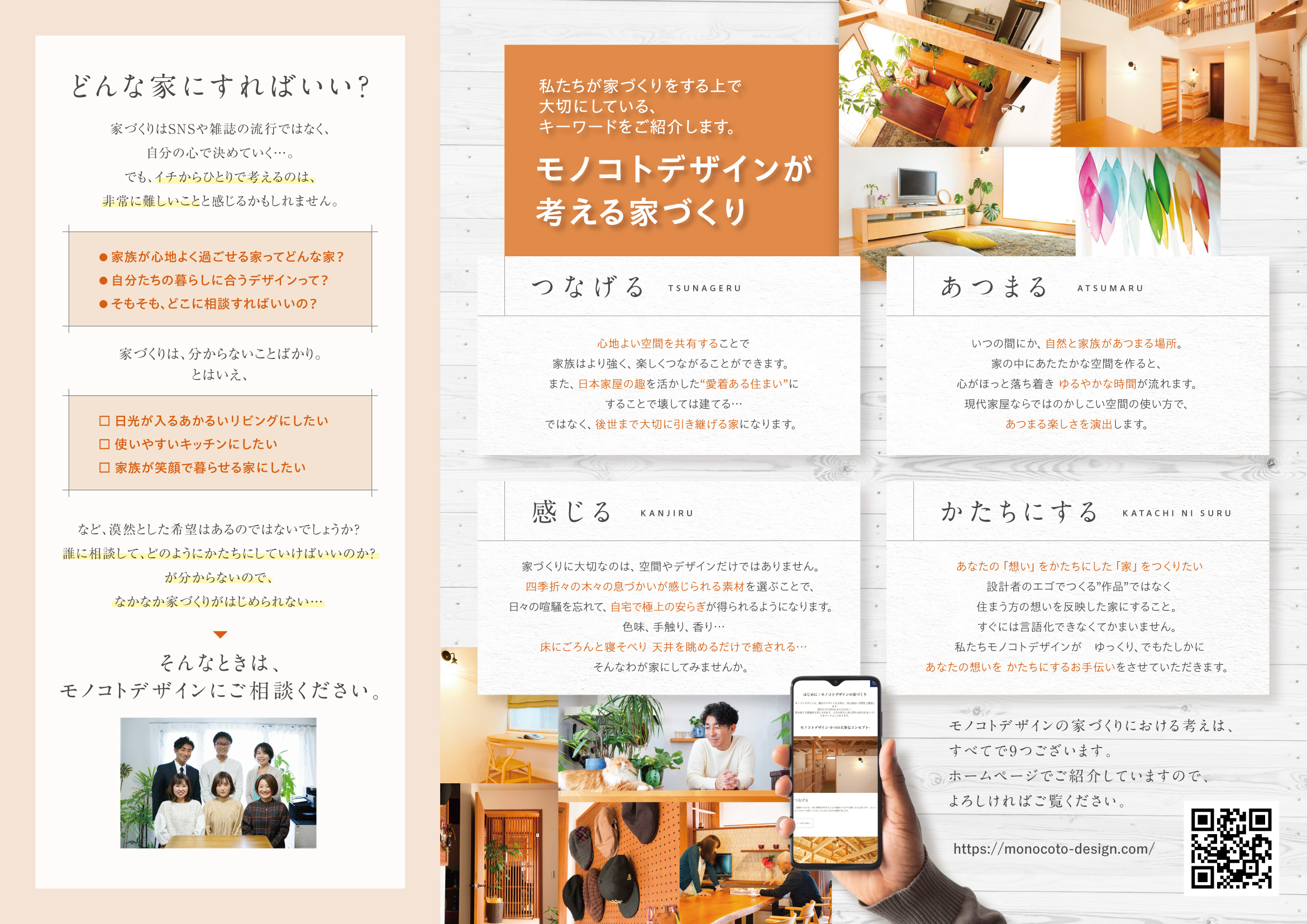 注文住宅・リノベーションの三つ折りリーフレットをデザイン制作語るパンフレット。