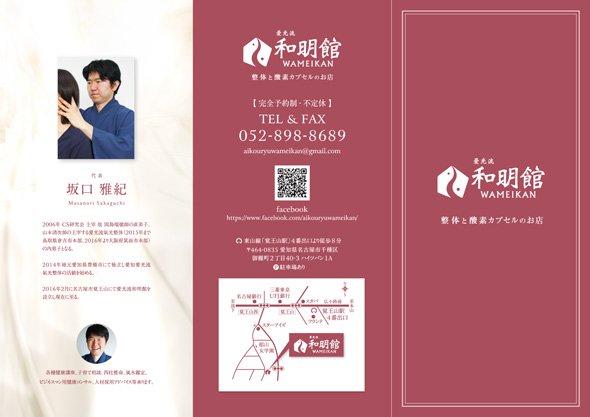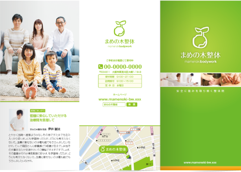三つ折りパンフレット 整体院用 のサンプルデザインデザインミッテ。