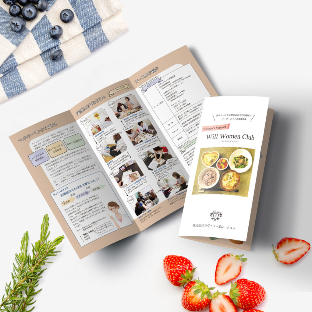 栄養指導サービス三つ折りリーフレット – 女子デザインラボ。