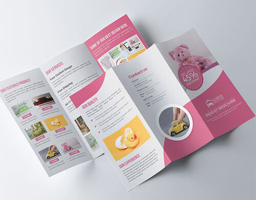 三つ折りパンフレット デザイン テンプレート チラシイラストテンプレート素材PSDダウンロード。
