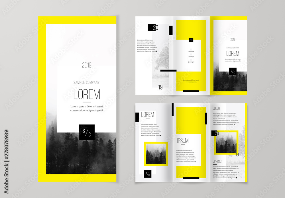 三つ折りパンフレットデザイン正方形の形状、三つ折りチラシのための企業のビジネステンプレート。創造的な概念折り畳まれたチラシやパンフレット.ストックベクター ©GreatBergens 305499208。