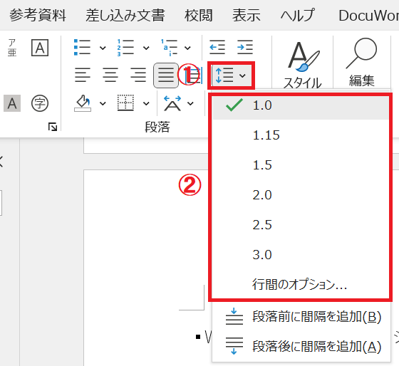 Wordの行間隔を広く・狭く調整する変更方法ad-ology。