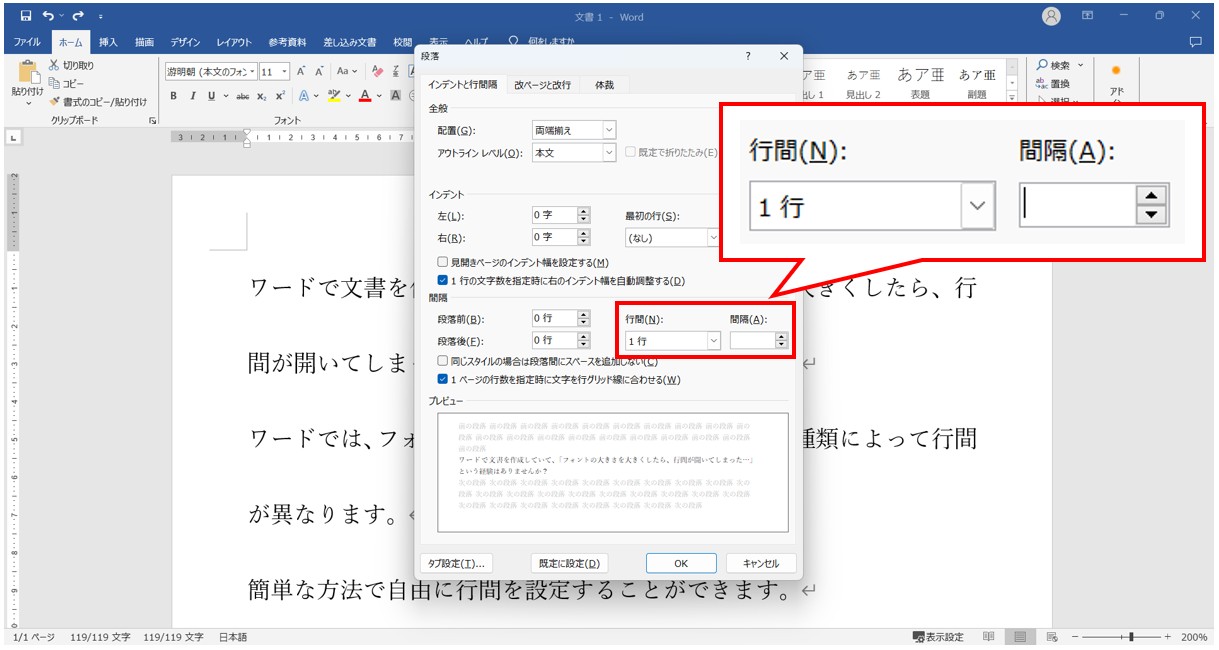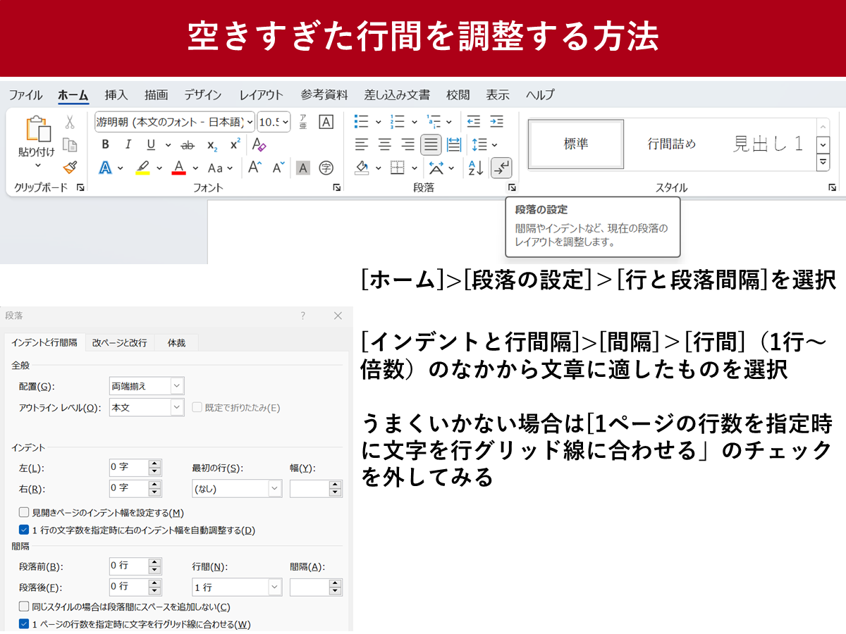 ワードで行間が空きすぎるときの対処法 狭くならないときはどうする?ツギノジダイ。