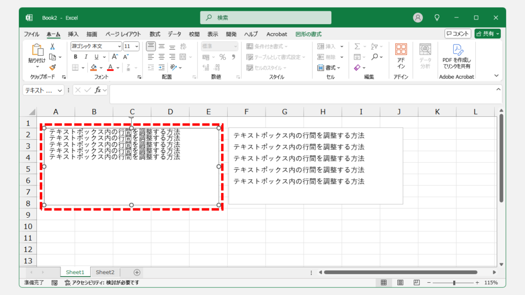 Excel テキストボックス内の行間を詰める方法情シスの自由帳。