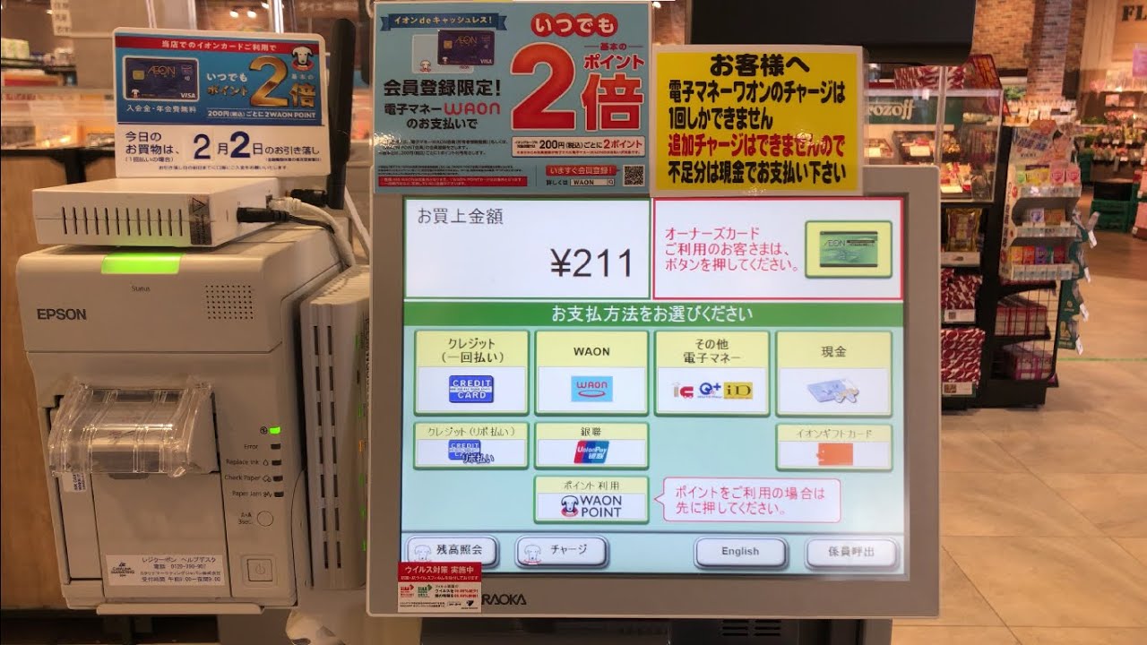 滋賀県 大津市 イオンスタイル大津京 セミセルフレジ WAON POINT & AEON Payで支払い。