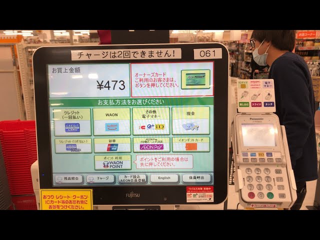 現存せず イオン大垣店のセルフレジ WAON POINT & 現金で支払い- YouTube。