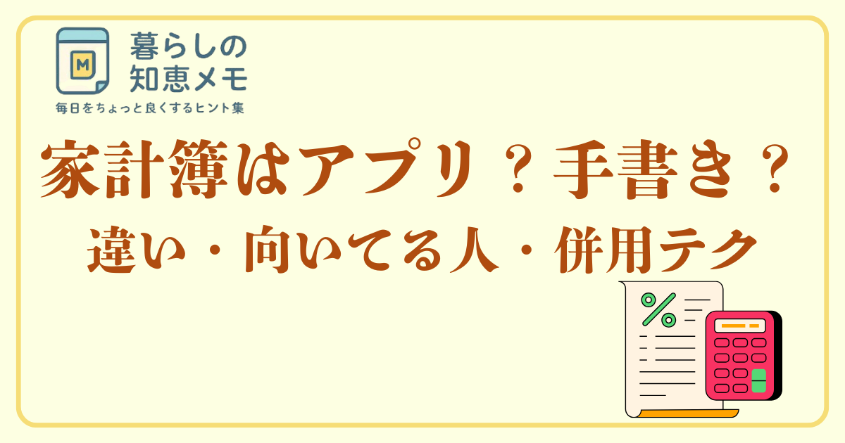 家計簿はアプリと手書きどっちがいい?違い・向いている人・併用テク完全ガイド - 暮らしの知恵メモ。