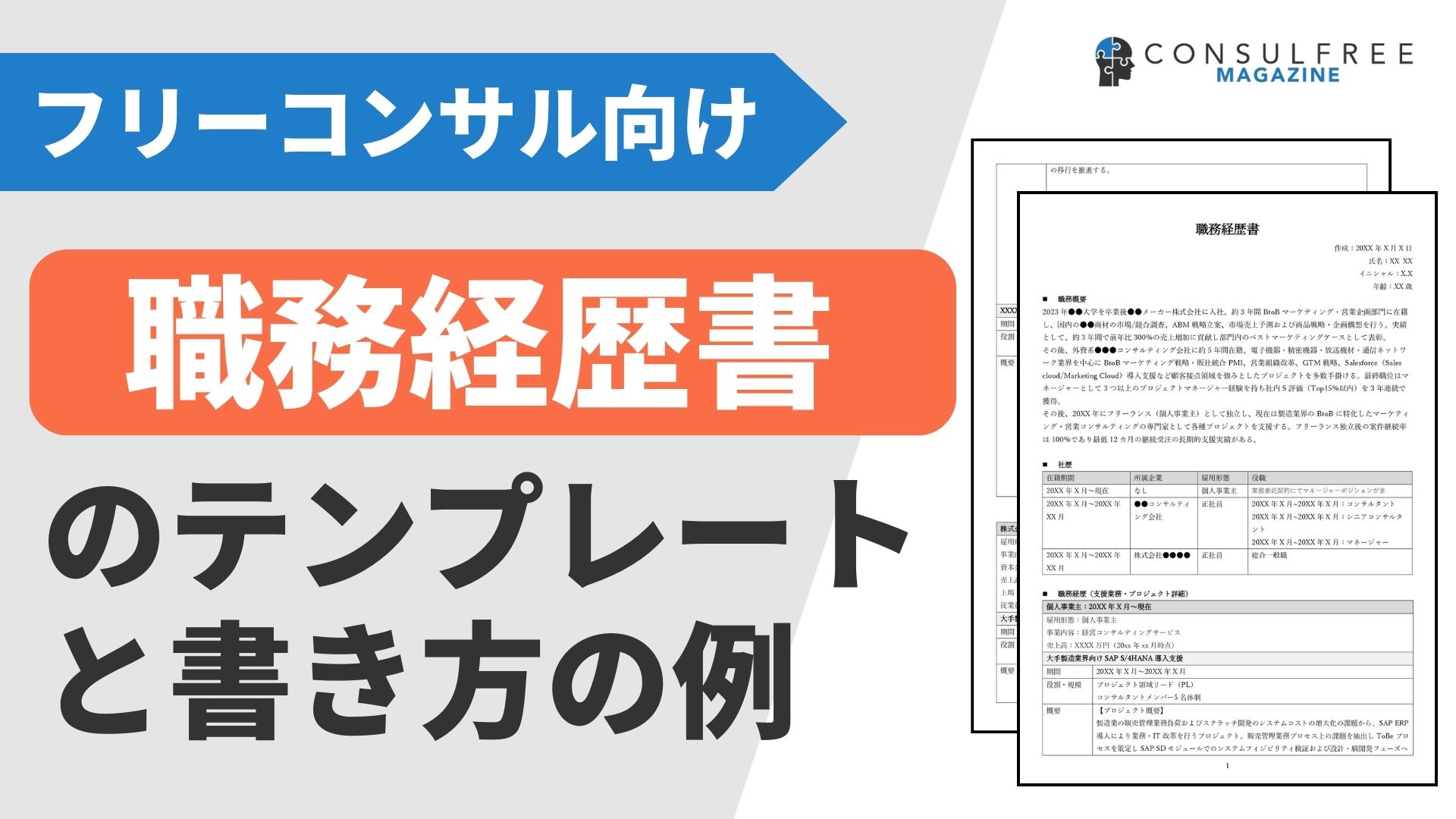 フリーランスの職務経歴書・履歴書の書き方とテンプレート コンサルタント職向けコンサルフリーマガジン。