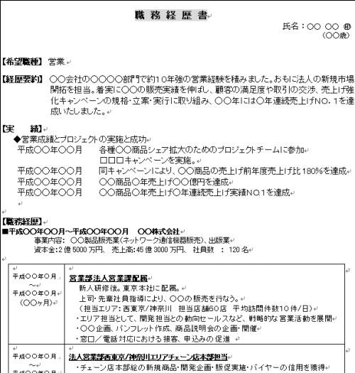 履歴書・職務経歴書の書き方 - 「職種別」職務経歴書の書き方 営業- 資格の王道。