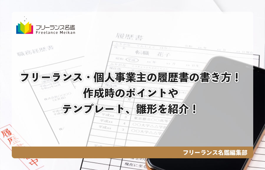 フリーランス・個人事業主の履歴書の書き方!作成時のポイントやテンプレート、雛形を紹介!フリーランス名鑑。