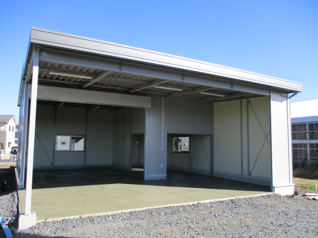 鉄骨造2階建て新築倉庫 施工事例工房。