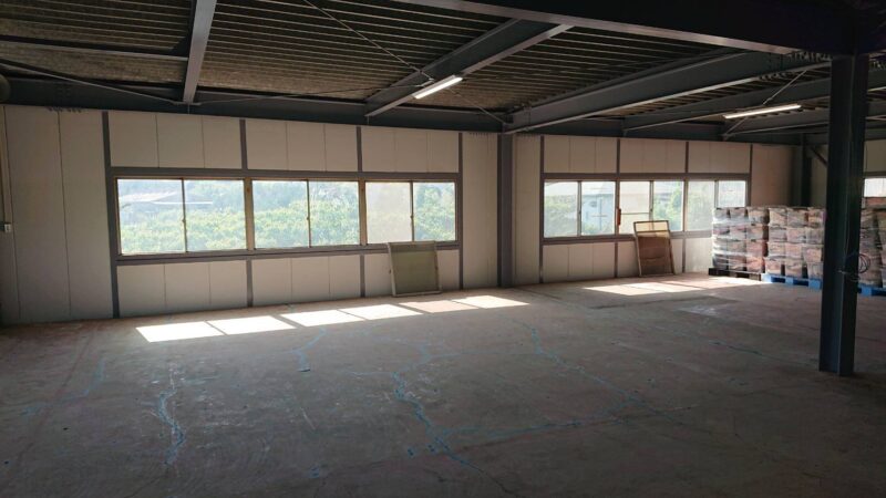 京都府久御山町既存鉄骨倉庫内特寸2階建てプレハブの中古施工事例オーダーメイドプレハブ。