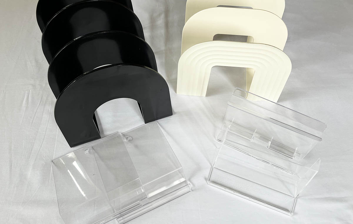デザインプラスチック収納の新シリーズ! 小物などの収納に是非!! デコラティブプラスチックシリーズ A4バスケット ピンク、ホワイトB5バスケット ピンク、ホワイトファイルスタンド ピンク、ホワイトボックス ピンク、ホワイト仕切りスタンド。