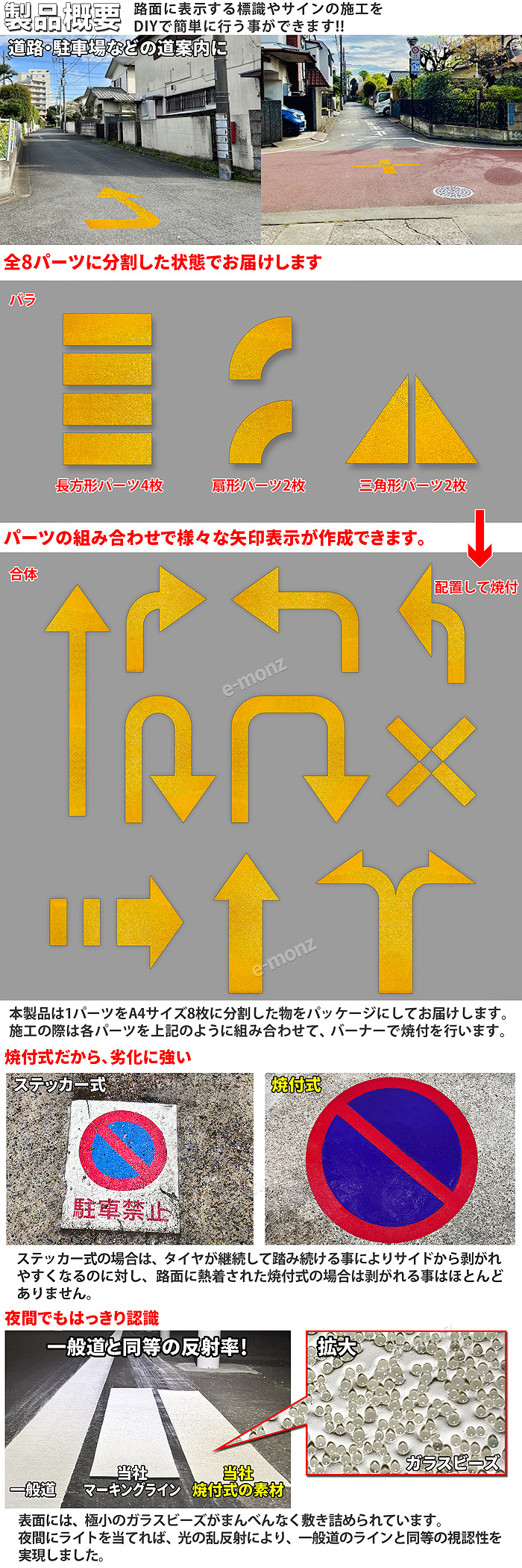 路面標示材 ロードマーキング サイン矢印 マーク 黄反射材 焼付式 ガラスビーズ 路面標示 路面サイン DIY 施工 注意喚起 安全対策おすすめ : eモンズ Yahoo!店 - 通販 - Yahoo!ショッピング。
