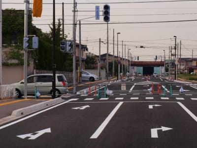 道路の赤い塗装で塗られた交差点は何ですか?株 大神産業。