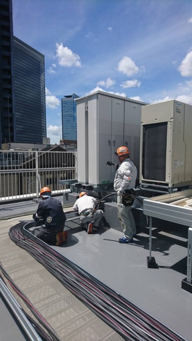 名古屋駅近辺テナントビル空調更新に伴う屋上室外機電源工事。