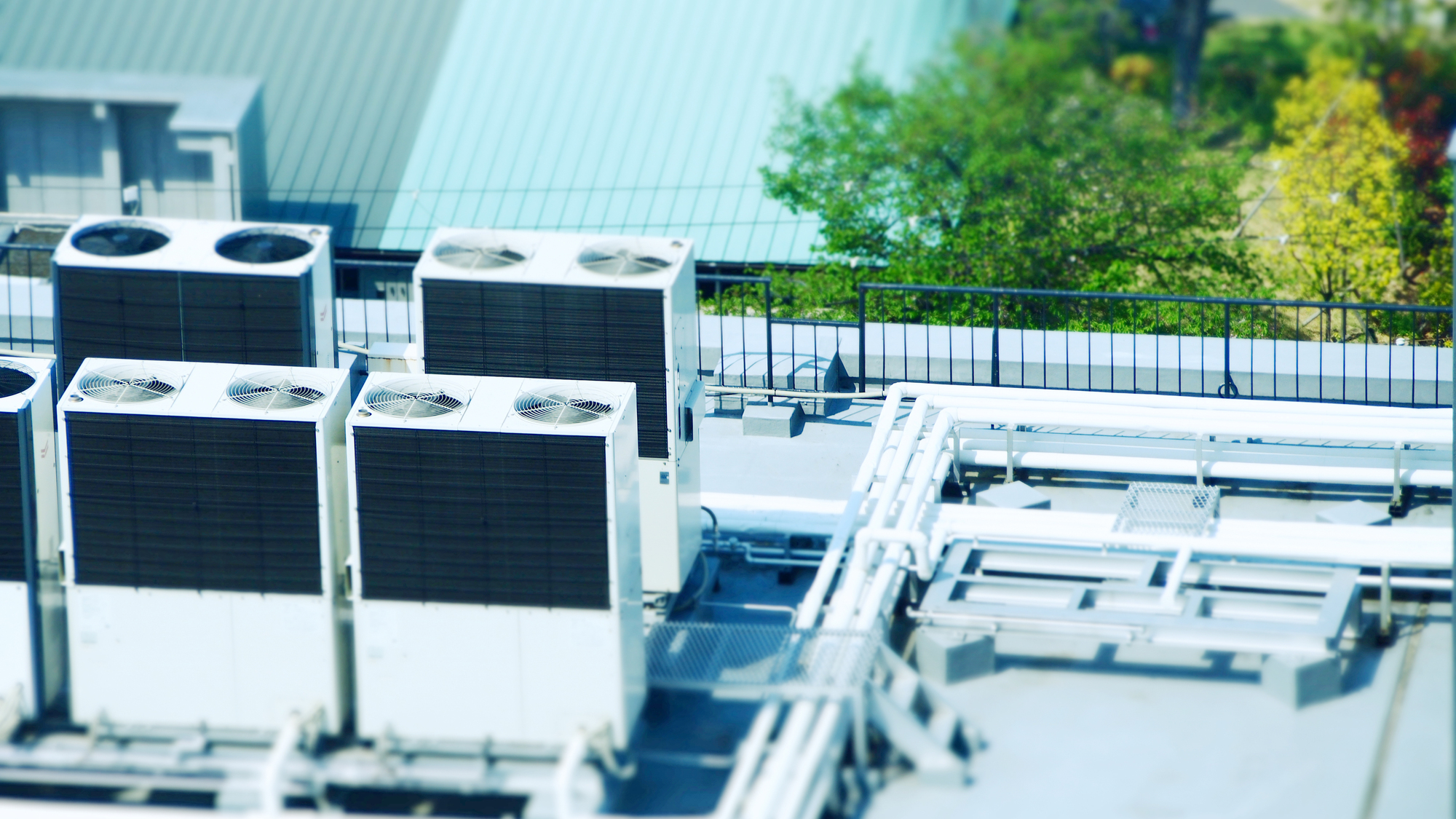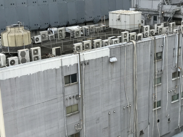 都会のビルの屋上に設置された空調設備。