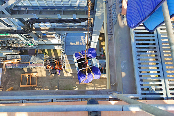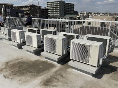 室外機200㎏の階段搬入と屋上据付。