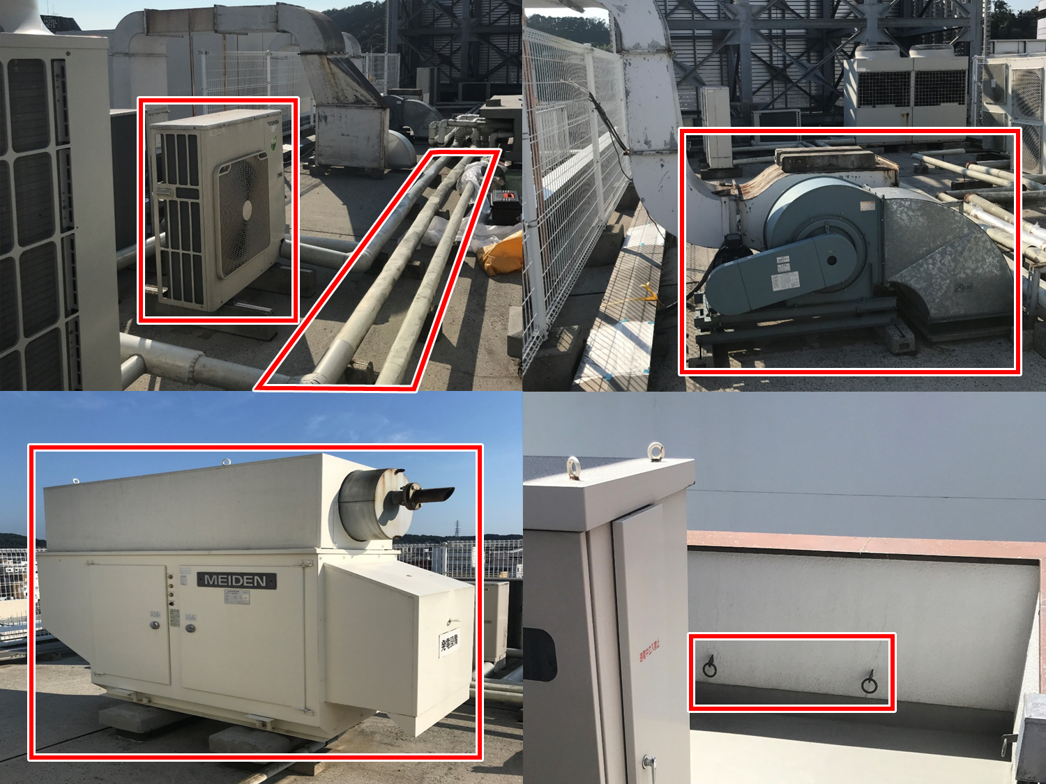 ホテル兼レストランへの改装工事に伴う業務用エアコン 上吹き室外機 の現地調査工場のキュービクル工事、幹線引込工事は岡山県のミヨシ電工にお任せください。