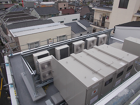 新築ビル屋上空調機の防音対策 <施工事例防音のパイオニア株式会社サンオー防音対策・騒音測定ネット。