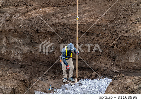 床付け面確認 根切り床 杭頭レベル 重機の写真素材81146042- PIXTA。