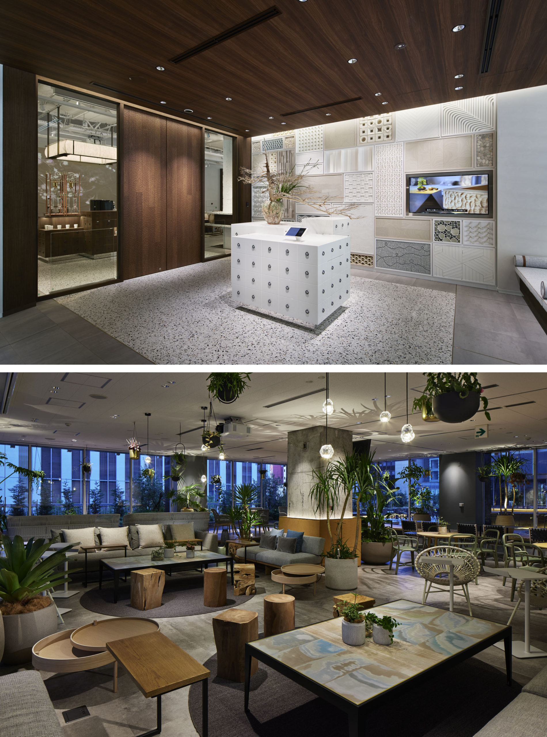 三井デザインテック本社 未来の働き方をデザインするオフィスを見学 東京建築祭集合場所:三井デザインテック株式会社本社 1F エントランス。
