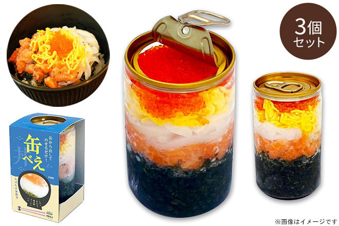 海鮮丼 マサエイ水産加工 缶べぇ 3本セット 180g×3グルメ 海鮮丼 ギフト 贈り物 魚介 サーモン イカ トビコ アカモク海女漁師が考案 大容量・大満足! のせるだけ海鮮丼「缶べえ」新発売!株式会社マサエイ水産加工のプレスリリース。