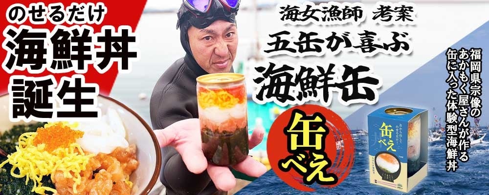 海女漁師が考案 大容量・大満足! のせるだけ海鮮丼「缶べえ」新発売!株式会社マサエイ水産加工のプレスリリース。