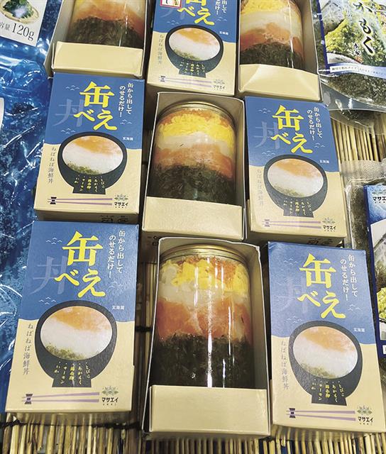 マサエイ水産加工 「缶べぇ」など展示 アカモクのおいしさPR : 日刊水産経済新聞。