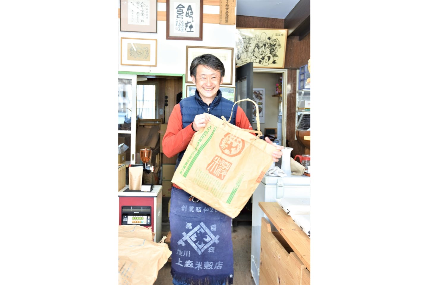 食の体験!美味しい北海道米を食べ比べよう。個性派「米袋トートバック」のお土産付き! 上森米穀店- TAISETSU HOKKAIDOACTIVITY CENTER。